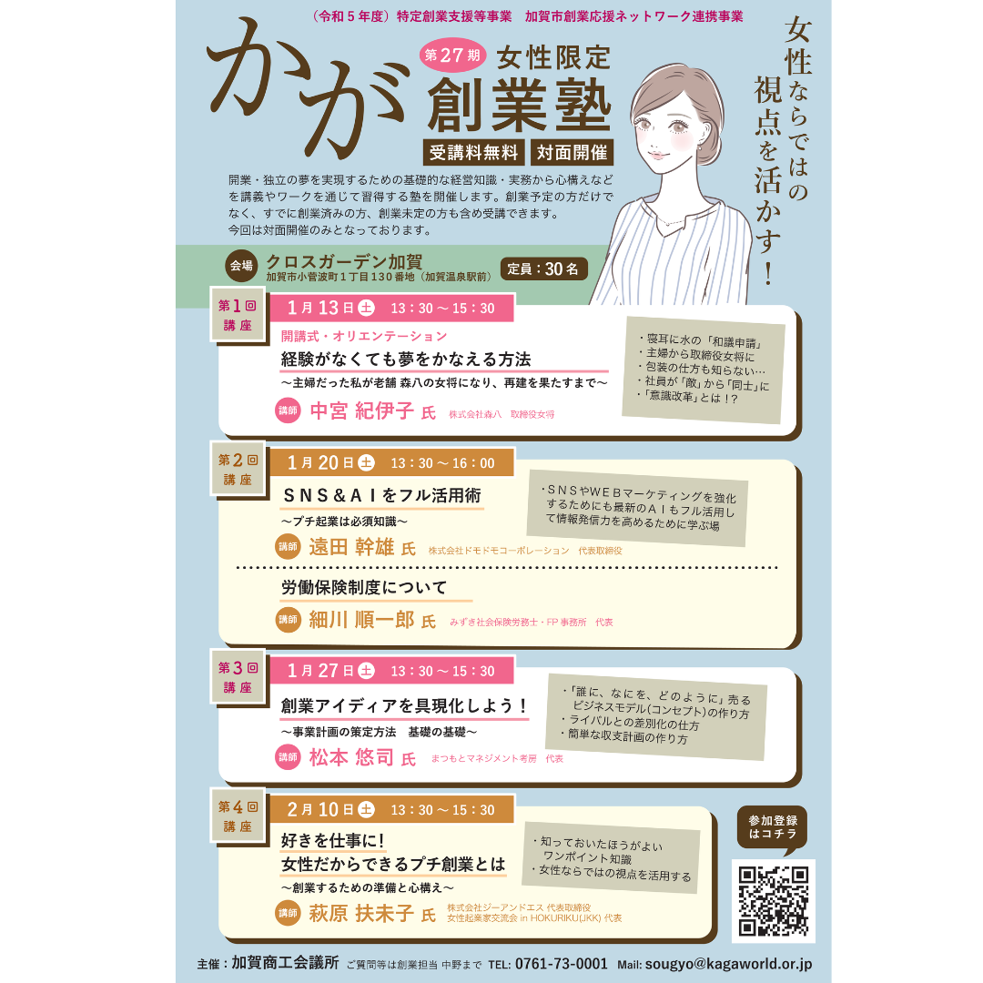 女性活躍推進、女性管理職育成、女性起業、ハラスメント、女性の健康管理等に関して、気軽に活用ください